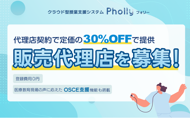 販売代理店マージンを30%へ拡大!OSCE支援機能で医療系学校から反響続々、授業支援システム「Pholly(フォリー)」