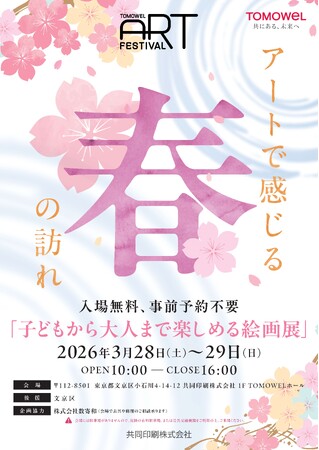 共同印刷株式会社(本社:東京都文京区、代表取締役社長:大橋輝臣 以下:当社)は、本社TOMOWELホールにて、「TOMOWEL ART FESTIVAL ~アートで感じる春の訪れ~」と題した絵画の展覧会を開催します。