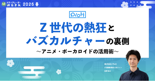 IPコンテンツの企画・制作・ビジネス展開を行う株式会社Plott(本社:東京都千代田区、代表取締役:奥野翔太、以下「Plott」)は、2025年3月13日(金)に開催する「第21回メディアレーダーWEEK 2026 春」(主催:株式会社アイズ)のオンラインセミナーに、当社IP展開事業部 広告ライン・相澤海斗が登壇することをお知らせいたします。