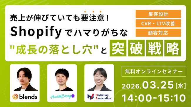 共催ウェブセミナー「売上が伸びていても要注意!Shopifyでハマりがちな“成長の落とし穴”と突破戦略 ~集客設計×CVR・LTV改善×顧客対応~」を2026年3月25日に開催!