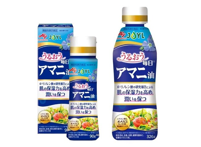 オメガ3脂肪酸の一種、α‐リノレン酸の機能性表示食品 肌の保湿力を高め、肌の潤いを保つ JOYL「AJINOMOTO ブランド 毎日(R)アマニ油」パッケージリニューアル
