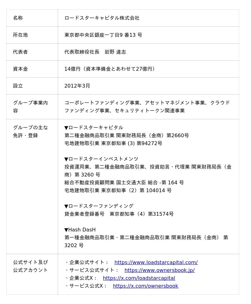 「ロードスターキャピタル株式会社」のプレスリリース