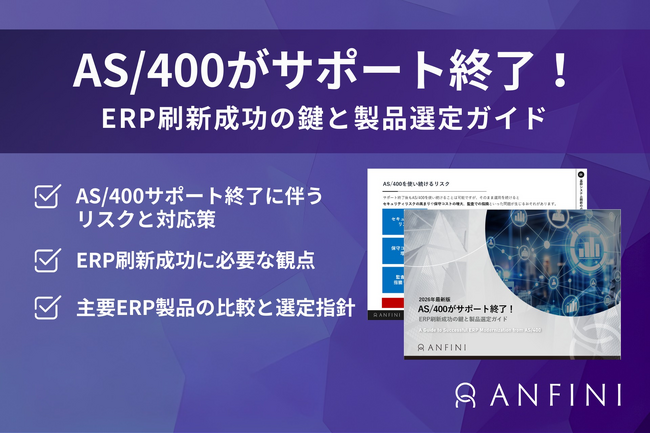 株式会社Anfini(本社:東京都港区、代表取締役:橋本 純)は、自社が運営するSAP専門メディア「SAP Consult Media(https://sap-consul.jp/)」にて、ホワイトペーパー『AS/400がサポート終了!ERP刷新成功の鍵と製品選定ガイド』を公開いたしました。