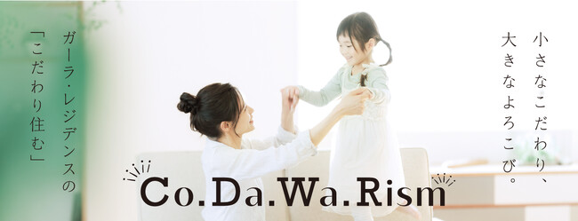 「Co.Da.Wa.Rism(こだわり住む)」はこれまで当社グループが開発分譲してまいりました自社ブランドマンション「ガーラ・レジデンス」シリーズで蓄積してきた「自由度の高い空間設計」「細部までこだわった収納」「誰もが使いやすいユニバーサルデザイン」などのノウハウをより高い水準へと昇華し、今後の商品企画に適時的確に反映させる試みとなります。