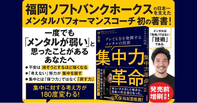 【福岡ソフトバンクホークス】日本一を支えた、メンタルパフォーマンスコーチ・伴元裕 初の著書『集中力革命』が発売