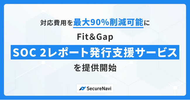 SecureNavi株式会社(本社:東京都、代表取締役:井崎)は、自社が提供するSOC 2/ISMAP対応プラットフォーム「Fit&Gap」を活用し、SOC 2対応に伴うコスト負担を大幅に削減する「SOC 2対応支援サービス」の提供を開始いたします。従来は費用面が大きな負担となっていたSOC 2対応において、準備作業や監査対応のプロセスを効率化することで、1,000万円規模に及ぶこともあるSOC 2対応コストを最大90%削減することが可能になります。※