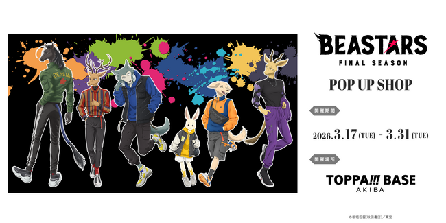 この度、2026年3月17日(火)から3月31日(火)まで、「TOPPA!!! BASE AKIBA」にて『BEASTARS FINAL SEASON』とのコラボレーションを実施します。