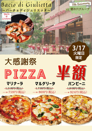 イタリア本場のピッツァ「バーチョ・ディ・ジュリエッタ恵比寿店」 3月17日(火)大感謝祭を開催!