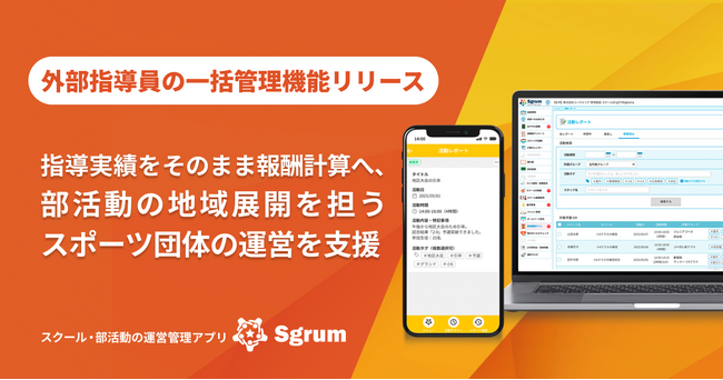 スポーツテック企業の株式会社ユーフォリア(本社:東京都千代田区、代表取締役社長:橋口 寛、以下 ユーフォリア)は、スクール・部活動運営管理アプリ「Sgrum(スグラム)」において、部活動の地域展開に伴う外部指導員の管理業務を効率化する新機能「スタッフ活動レポート機能」をリリースいたしました。