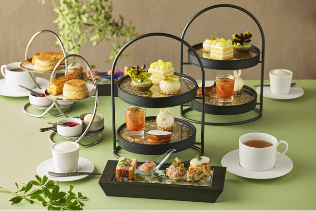 初夏の爽やかな空気に包まれながらお愉しみいただくのは、旬の食材を贅沢に取り入れ、輝く新緑のカラーに彩られたアフタヌーンティー。