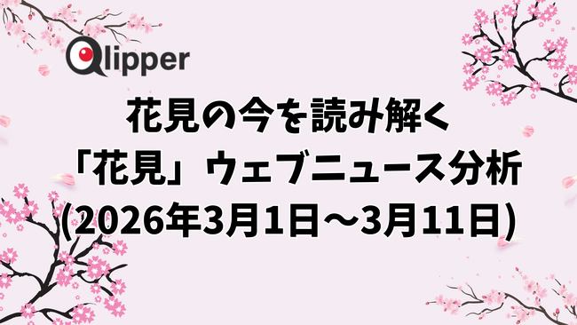 今回、株式会社トドオナダ(代表取締役社長 松本泰行)は、2026年3月1日 ~ 3月11日の「花見」に関するウェブニュースについて調査・分析いたしました。4,000以上のWEBメディアをモニタリングできるPR効果測定サービス「Qlipper」( https://qlipper.jp/ )のデータに基づいた調査結果です。
