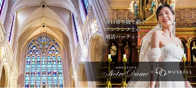 会場は、株式会社日本セレモニーが展開する結婚式場ブランド「FIVESTAR WEDDING」の「アンジェリカノートルダム」。本格大聖堂やプライベートガーデンを備えた非日常的な空間の中で開催します。