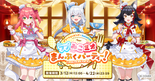 LINEヤフー株式会社(以下、LINEヤフー)が運営する「Yahoo!ショッピング」は、人気VTuberグループ「ホロライブ」とのコラボレーションによる期間限定キャンペーン第二弾を2026年3月12日(木)正午から4月22日(水)まで開催します。グルメを中心とした「Yahoo!ショッピング × hololive フブみこミオまんぷくパーティー!」(以下、本キャンペーン)は、YouTube配信、限定コラボグッズのプレゼントなど、計4つの企画を展開します。