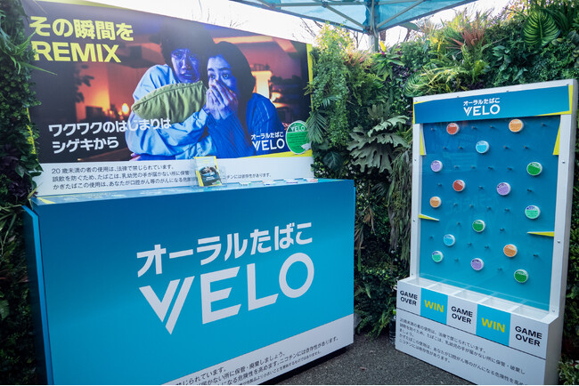 当日は、「その瞬間をREMIX」をコンセプトにしたブース展開のもと、VELO製品のトライアル体験を実施したほか、景品をかけたミニゲーム「REMIX DROP」を設置。音楽・ファッション・アートが交差する会場で、多くの来場者にブランドの世界観を体感いただく機会となりました。