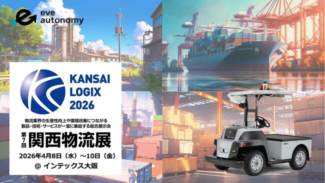 株式会社eve autonomy(イヴ・オートノミー、静岡県磐田市、代表取締役CEO:星野 亮介、以下「eve autonomy」)は、幅広い製造業向けに自動化設備を展開している株式会社山善と共同で、2026年4月8日(水)~10日(金)にインテックス大阪で開催される物流総合展「第7回 関西物流展(KANSAI LOGIX 2026)」に出展します。