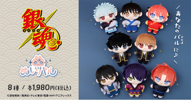 ぬいパルに銀時たち8種が仲間入り!ぬいパルとは、優しく、あたたかみある、約12cmの手のひらサイズのぬいぐるみシリーズ。大切なお肌や髪はふわふわボア仕上げ。浮き上がりやすい前髪は刺繍で抑えて崩れ知らずです。あなたのパル(お友達)として、ぜひお迎えください♪