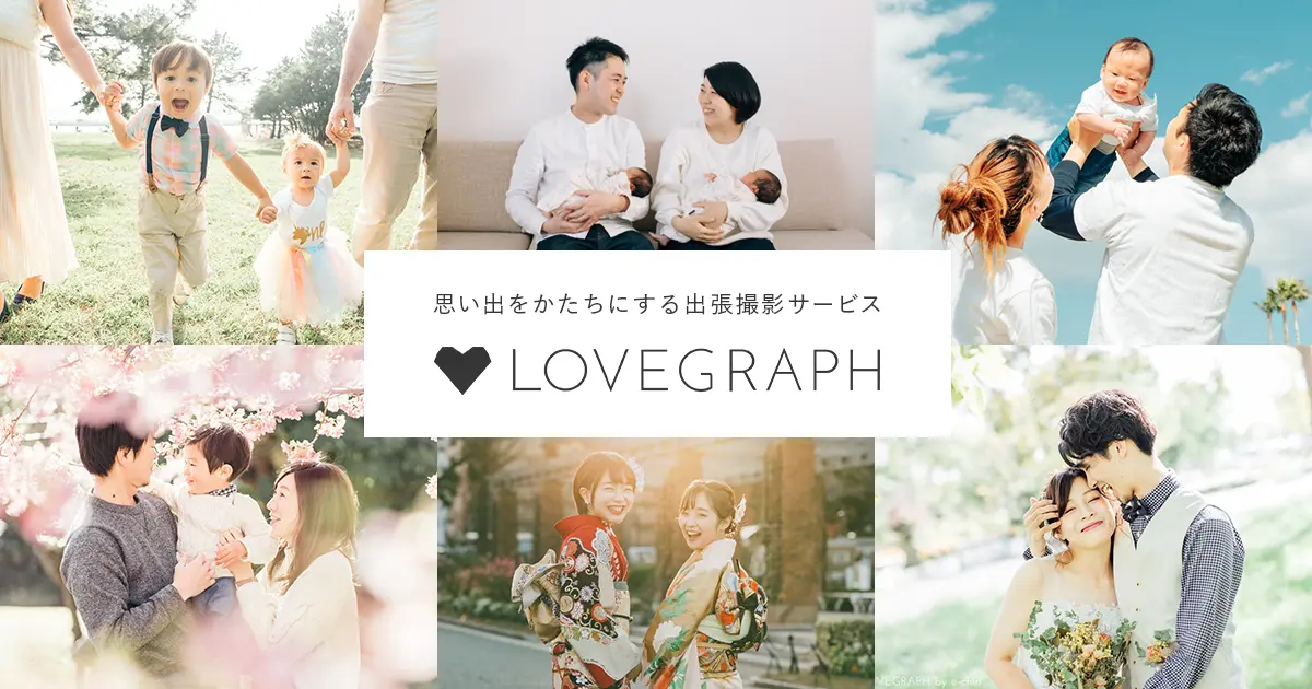 Lovegraph(ラブグラフ)( https://lovegraph.me )は、家族やカップルのおでかけに、プロのカメラマンが同行し写真撮影をする、出張撮影サービスです。撮影件数は累計180,000組に上り、お誕生日や記念日、七五三やお宮参りなど様々なシーンでご利用いただいております。