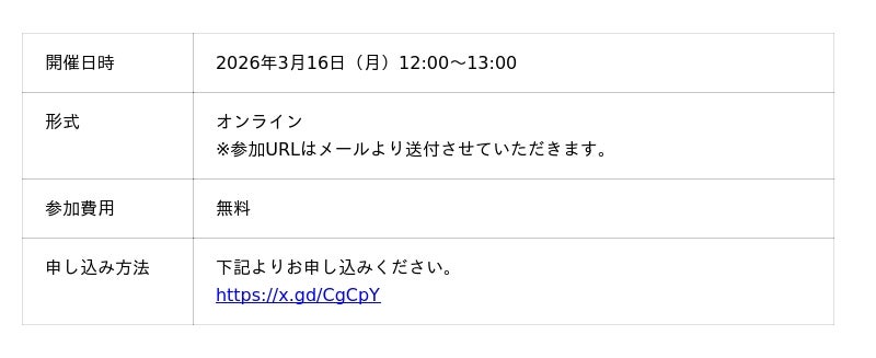 [表: https://prtimes.jp/data/corp/40945/table/78_1_1001292a6ee8e6ca98cb20675a278bb0.jpg?v=202603120445 ]