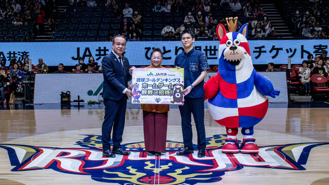 本取り組みは、昨年に引き続きキングスのオフィシャルパートナーである「JA共済連沖縄」のご協力の下、キングスホームゲーム観戦チケット200枚を「沖縄県母子寡婦福祉連合会」へ贈呈し、ひとり親世帯100組のご招待が実現しました。今シーズンで4回目の実施となります。
