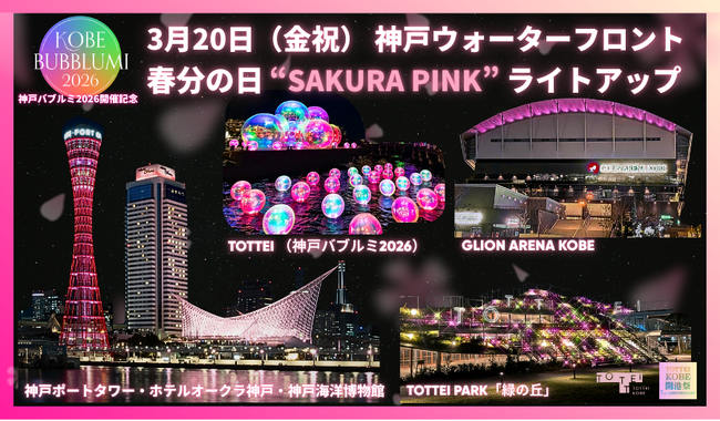 - 水辺のイマーシブアート&イルミイベント「KOBE BUBBLUMI 2026」開催記念!3月20日(金祝)春分の日に神戸ウォーターフロントがさくらピンクに染まる!03/13 08:45