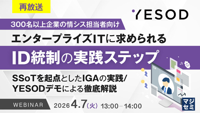 マジセミ株式会社は「【再放送】【300名以上企業の情シス担当者向け】エンタープライズITに求められるID統制の実践ステップ」というテーマのウェビナーを開催します。