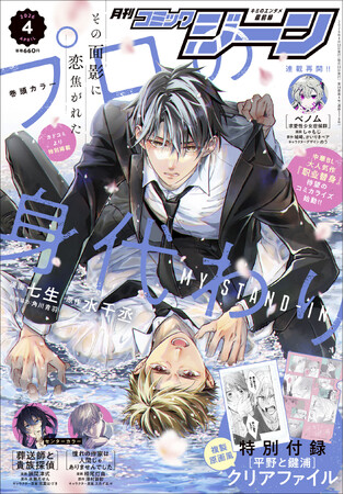 水千丞(シュイ・チエンチェン)による大人気中華BL小説『职業替身(職業替身)』の日本版コミカライズ、『プロの身代わり』が表紙&巻頭カラーで登場! 特別付録は、『平野と鍵浦』複製原画風クリアファイル!