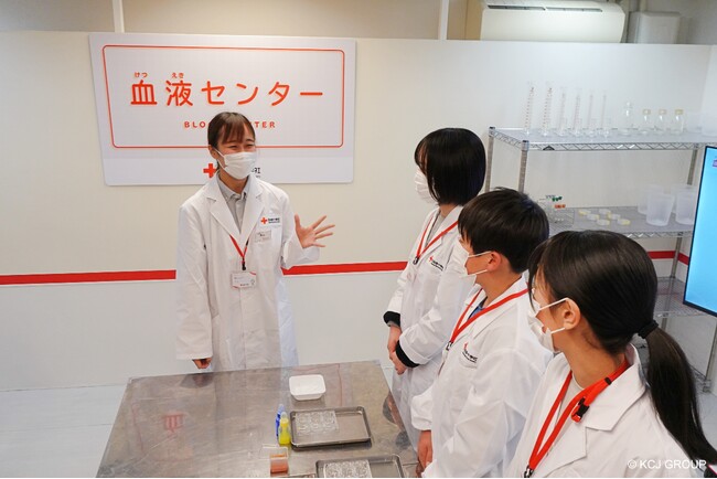 日本赤十字社とKCJ GROUPは、「血液センター」パビリオンでの仕事体験を通じて、「血液」や「献血」について正しく理解する機会を提供し、次世代を担うこども達がいのちを繋げていくことへの関心を持つきっかけを得られるように願っています。