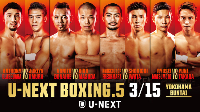 軽量級3階級の世界王座戦に加え、レジェンドが参戦するWBA世界バンタム級挑戦者決定戦をお届けする『U-NEXT BOXING.5』。