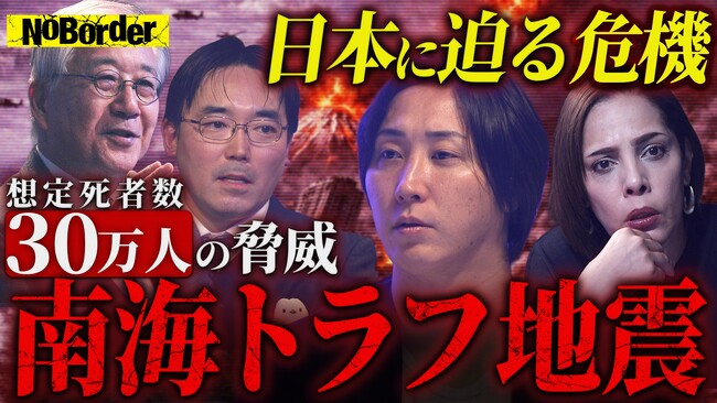 地上波タブーのニューメディア『NoBorder』を展開する 株式会社NoBorder(本社:東京都港区、代表取締役:溝口勇児)は、「#38 日本史上最大級の被害想定─日本崩壊を招く"南海トラフ巨大地震"の脅威と死者30万人予測の真実」 を本日21:00に公開したことをお知らせいたします。