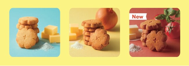 〈B.sable(ベー・サブレ)〉3種…左から、[プレーン/塩]、[オニオン]、[トマト]