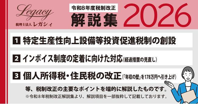 相続・事業承継に特化し、複雑になりがちな富裕層の案件を多く手がける税理士法人レガシィを中心としたレガシィマネジメントグループ(東京都中央区)は、令和8年度税制改正のポイントを整理した士業向け解説資料の提供を開始しました。