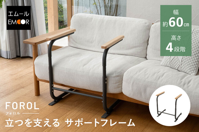 「身体に合った寝る・座る・たたむ」を提供する健康家具ブランドEMOORを展開する株式会社エムール(東京都立川市:代表取締役 高橋 幸司/以下、エムール)は、2026年3月13日より『FOROL(フォロル)立つを支えるサポートフレーム』(以下、FOROL)の販売を開始しました。