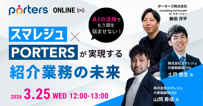 【3/25開催:スマレジュ×ポーターズ 共催セミナー】「AI導入したけど成果が出ない」を打破!人材紹介・派遣業務を最速自動化