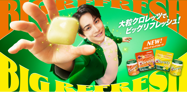 モンデリーズ・ジャパン株式会社(本社:東京都品川区 / 代表取締役社長:碇祐輔)は、息スッキリの「クロレッツ」ブランドから、通常のガムの約1.4倍*の大粒で、噛むたびにフルーツの爽快感が広がる新ライン「クロレッツ ビッグフルーツ」を、2026年3月23日(月)より全国で発売いたします。また、同期間より俳優・町田啓太さんを起用したTVCM・デジタル広告を放映するとともに、豪華景品が当たるSNSキャンペーンを実施します。