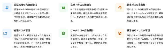 ~自律思考型AIが「認識・判断・実行・学習」を繰り返し、受注・在庫・配送・顧客対応など複雑な業務を自動遂行~