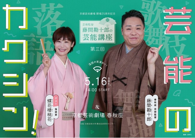 藤間勘十郎が伝統芸能の魅力を語り尽くす講座「芸能のカクシン!」 落語家・蝶花楼桃花をゲストに迎え、京都芸術大学・春秋座で5月16日開催