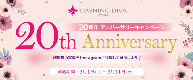 ネイルサロンを運営するダッシングディバインターナショナル株式会社(本社:東京都新宿区、代表取締役:田口 謙一、以下「ダッシングディバ」)は、2026年3月31日(火)まで「20周年アニバーサリーキャンペーン」を展開中です。20周年の感謝を込め、サロン体験をSNSで共有し「指先からハッピーを広げる」参加型イベントを通じて、お客様と共に新たなネイル文化を盛り上げてまいります。