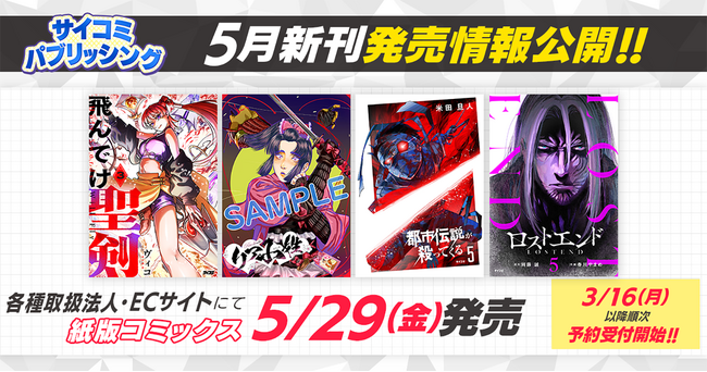 株式会社Cygames(本社:東京都渋谷区、代表取締役社長:渡邊耕一)は、マンガ配信サービス「サイコミ」で連載中の作品を自社で出版する「サイコミ パブリッシング」として、5タイトルの紙書籍を5月29日(金)から発売します。各種取扱書店およびECサイトにて、3月16日(月)から順次予約受付を開始します。