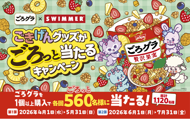 キャンペーンタイトル:「ごろグラ×SWIMMER ごきげんグッズがごろっと当たる キャンペーン」当選人数:各回560(ごろっと)名様