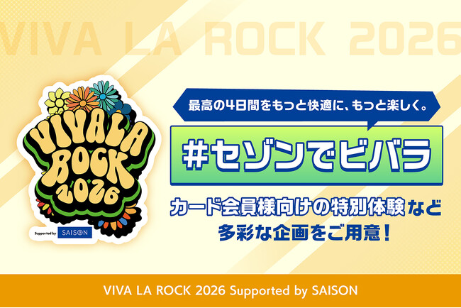 株式会社クレディセゾン(本社:東京都豊島区、代表取締役(兼)社長執行役員COO:水野 克己、以下:当社)は、2026年5月3日(日・祝)~5月6日(水・休)に埼玉県の埼玉スタジアム2002周辺・野外特設会場で開催される大型ロックフェスティバル「VIVA LA ROCK 2026 Supported by SAISON」に特別協賛いたします。
