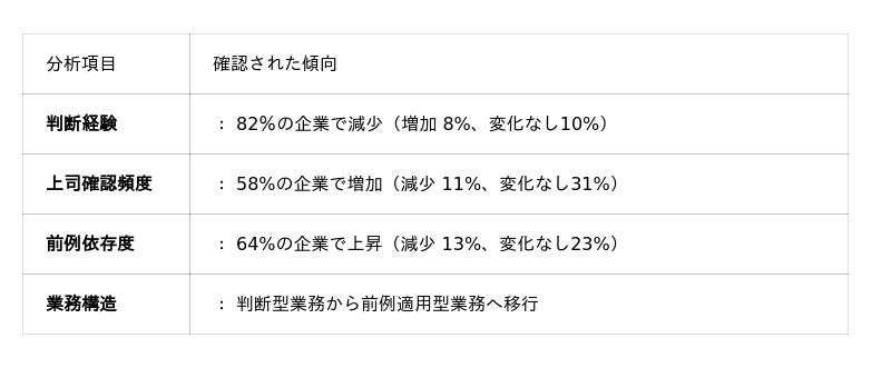 前例依存64%増加、上司確認58%増加。働き方改革と業務構造変化の中で、企業の判断経験が減少する構造を分析