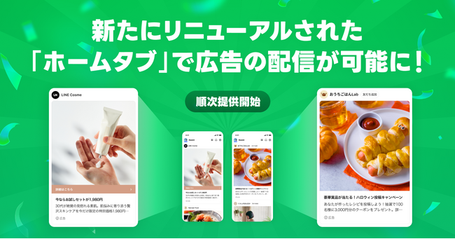LINEヤフー株式会社(以下、LINEヤフー)は、企業のマーケティング活動効果の最大化を目的として、運用型広告「LINE広告」および「Yahoo!広告 ディスプレイ広告」において、新たにリニューアルされた「LINE」内の「ホームタブ」での広告配信を開始しました。