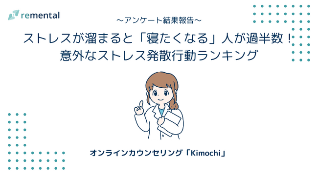 オンラインカウンセリングサービス「Kimochi」を運営する株式会社remental(本社:東京都渋谷区、代表取締役:佐藤利音)は、20代~50代以上の男女429名を対象に「ストレス対処行動に関する意識調査」を実施しました。