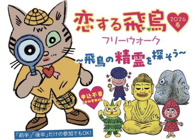 奈良県明日香村内の歴史スポットや絶景ポイントを巡る「フリーウォーク」を開催します。参加無料で予約不要!期間中ならいつでも、お好きなチェックポイントからスタートできます。徒歩はもちろん、自転車やバス、自家用車での移動もOK。特に春の風を感じられるレンタサイクルでの周遊がイチオシです![画像4: https://prcdn.freetls.fastly.net/release_image/155453/24/155453-24-d52f5e651950ccf4f0431a33875574f7-2354x2700.jpg?width=536&quality=85%2C75&format=jpeg&auto=webp&fit=bounds&bg-color=fff ]