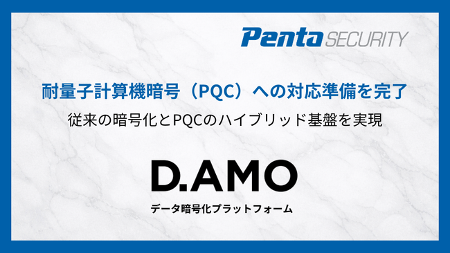 情報セキュリティ企業のペンタセキュリティ株式会社(本社:韓国ソウル、代表取締役社長:金 泰均、以下ペンタセキュリティ)は、データ暗号化プラットフォーム「D.AMO」において、米国NIST(国立標準技術研究所)標準の耐量子計算機暗号(PQC)、および韓国の耐量子計算機暗号アルゴリズム(KPQC)に対応する開発および技術検証を完了したことをお知らせいたします。