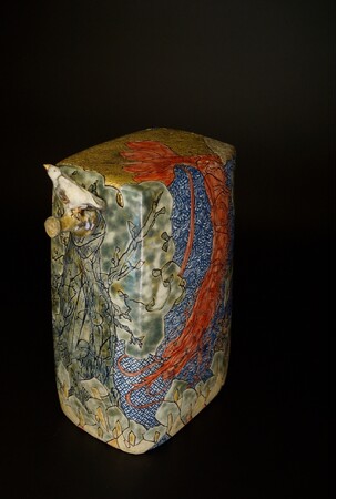 「線彫色絵枕型華器」(陶器、約幅15×奥行10×高さ25cm)176,000円(税込)