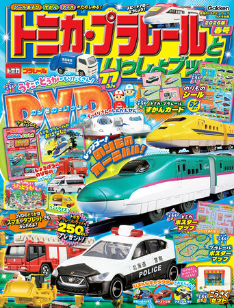 ダイキャスト製ミニカー「トミカ」と鉄道玩具「プラレール」(発売元:株式会社タカラトミー)など、のりものの情報たっぷりのDVD付きマガジン『トミカ・プラレールといっしょブック2026年春号』。前号からページ数を増やし、さらにパワーアップした付録&本誌の内容をご紹介します。