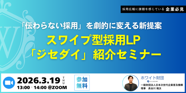 「応募はあるのに決まらない採用」を解決へ。ホワイト財団、スワイプ型採用LP「ジセダイ」紹介セミナーを3月19日開催