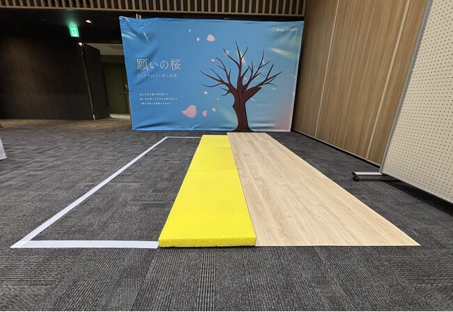 来場者は、通常の床、『ころやわ(R)』の床、そして厚みのあるクッションマットという3種類の床を実際に歩き比べながら、床の違いによる歩行感覚や安全性の違いを体感しました。歩行環境の違いによって、足裏に伝わる感覚や安心感がどのように変化するのかを、来場者自身の身体で感じていただく展示となりました。