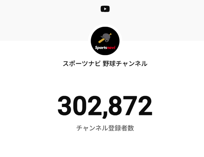 YouTubeの「スポーツナビ 野球チャンネル」が登録者数30万人突破